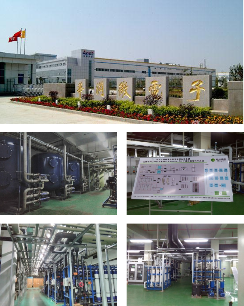 自2014年起,公司相继与无锡华润微电子有限公司及其旗下无锡华润上华科技有限公司合作,其中合作的8英寸0.25微米以下集成电路芯片超纯水项目,是国内首套应用全膜法工艺的8英寸晶圆用超纯水系统,整合了多介质过滤、膜脱气、超滤(UF)、反渗透(RO)、电去离子(EDI)、PMB等核心工艺技术,有效确保了客户生产线对超高纯度水的稳定供应。