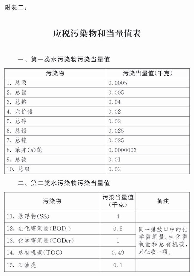 (二)应税水污染物按照污染物排放量折合的污染当量数确定;